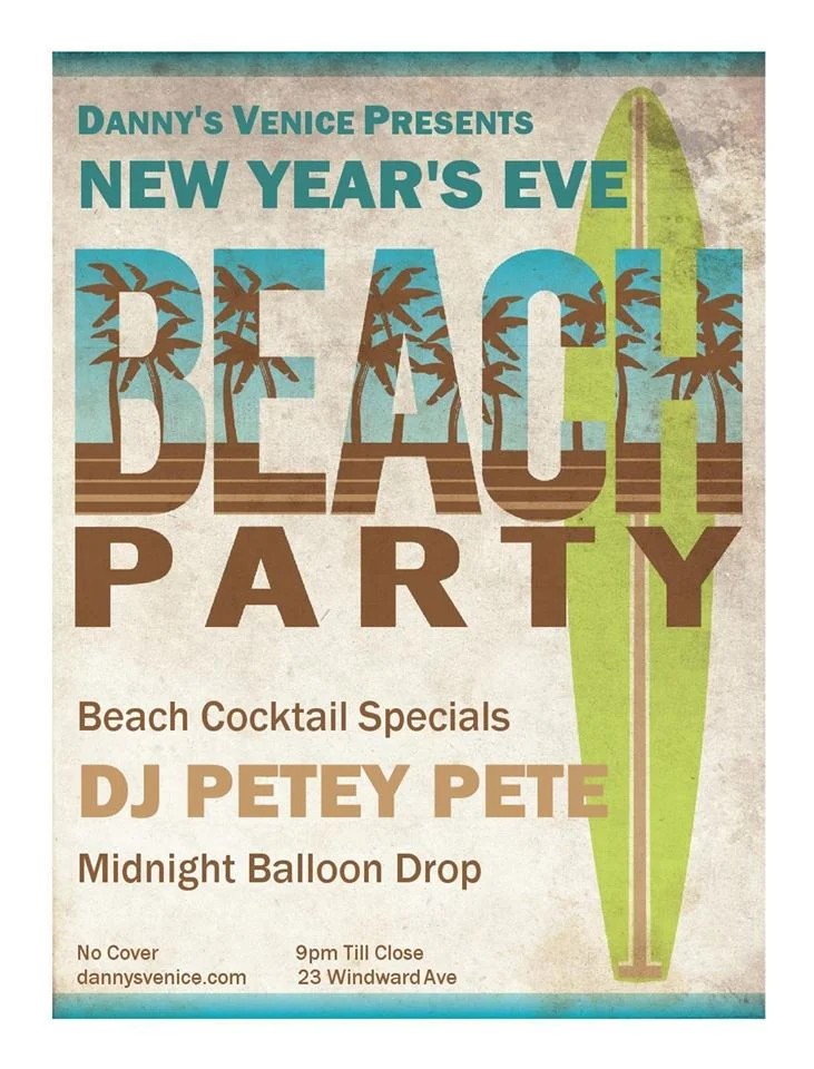 Danny's New Year's Eve Wednesday, December 31, 2014 9:00 PM 21:00 Thursday, January 1, 2015 2:00 AM 02:00 Danny's 23 Windward Ave Venice CA, 90291 United States (map) Google Calendar ICS