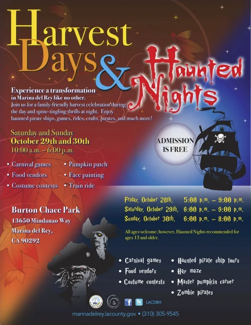 Free family-friendly fun for all ages. By day, a harvest celebration with a hay maze, games, rides and craft. And at night, zombies and haunted pirate ship.