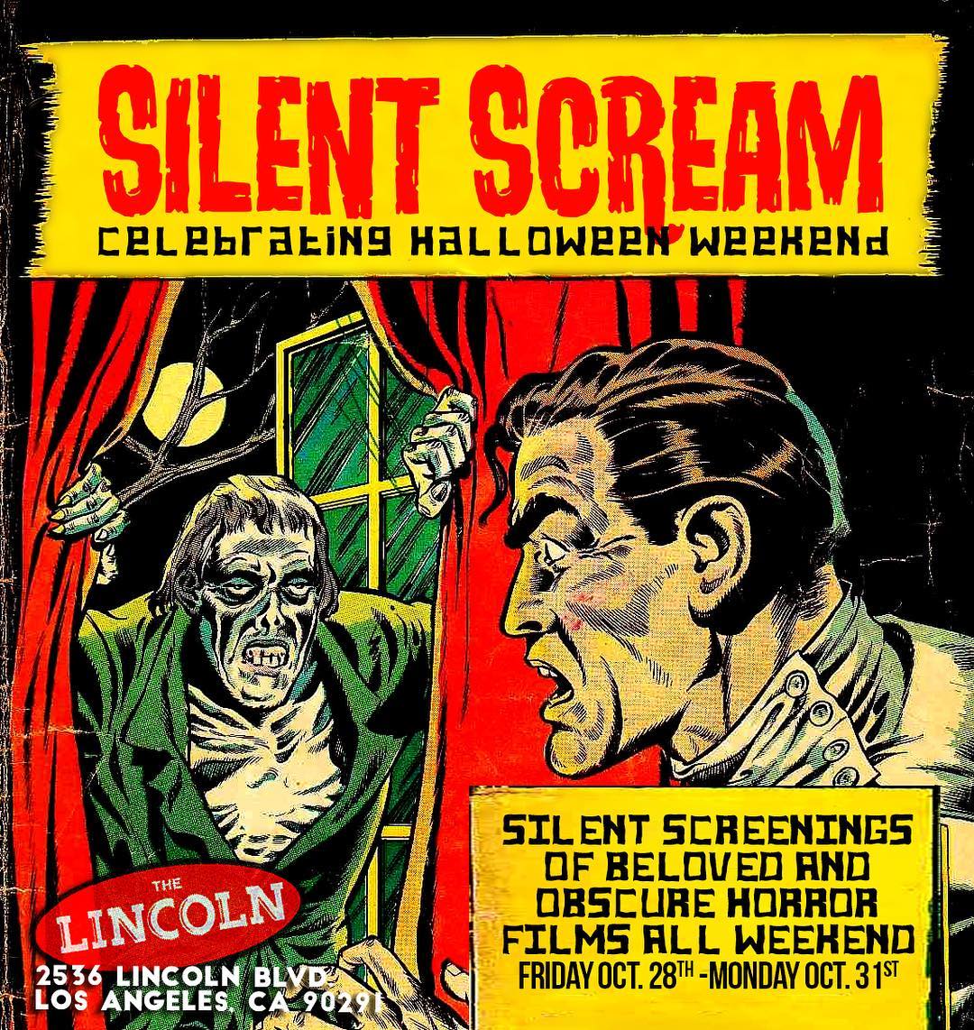 Silent Horror Film Screenings @ The Lincoln Venice Friday, October 28, 2016 7:00 PM 19:00 Tuesday, November 1, 2016 6:00 AM 06:00 The Lincoln Venice 2536 Lincoln Boulevard Venice, CA, 90291 United States (map) Google Calendar ICS Sip cocktails with silent horror flicks in the background on Halloween weekend at the Lincoln Venice.