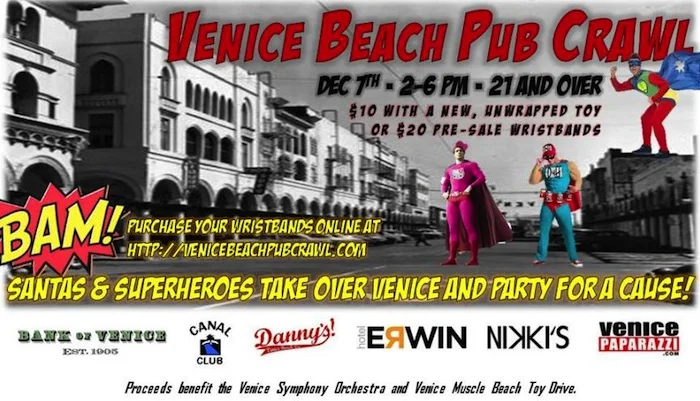 Venice Beach Pub Crawl Saturday, December 7, 2013 2:00 PM 6:00 PM 14:00 18:00 Google Calendar ICS Venice Beach Pub Crawl