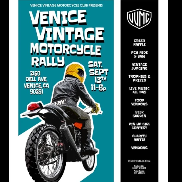 Venice Vintage Motorcycle Rally Saturday, September 13, 2014 11:00 AM 6:00 PM 11:00 18:00 VVMC Motorcycle Rally 2150 Dell Ave Venice, CA, 90291 United States (map) Google Calendar ICS