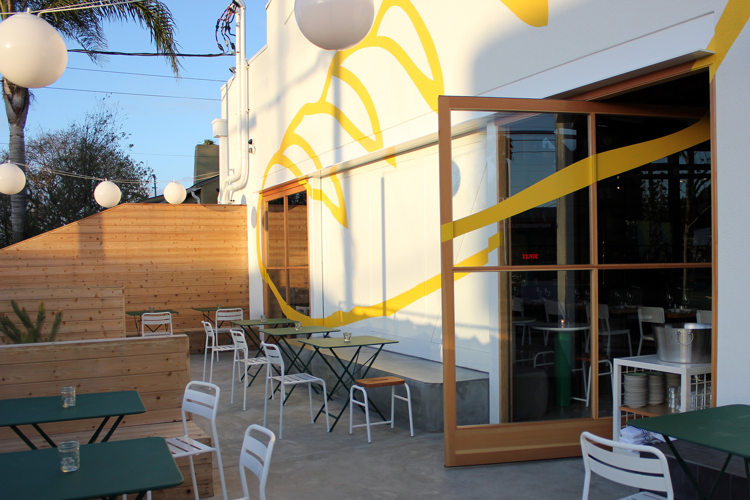 Indoor/ outdoor dining at its best can be found here at Superba Food & Bread, a converted auto shop on Lincoln Blvd. (Photo by Glennie Rabin for Lincoln & Rose.)