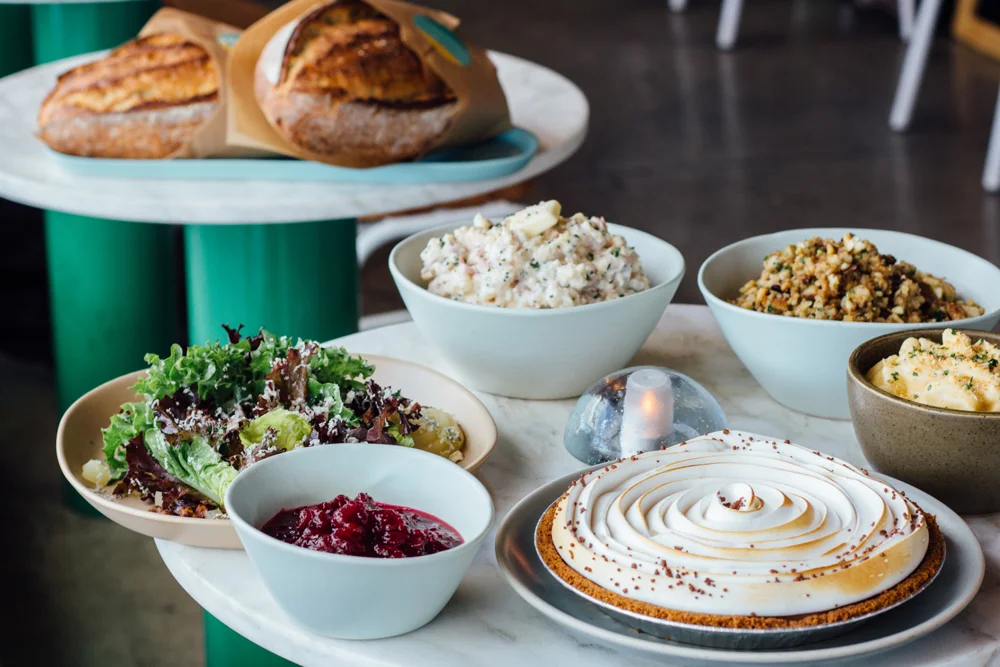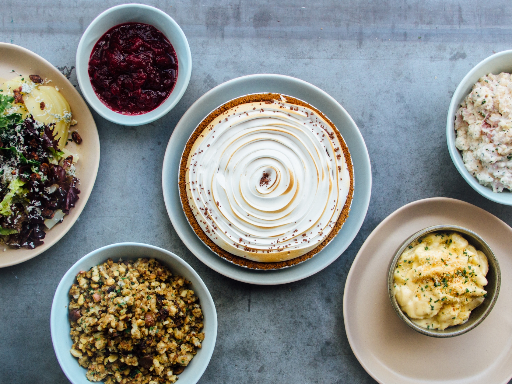 Add something savory into the mix with a meat pie. For the first time since opening last November, Aussie Pies will be offering family-size 9-inch pies ($44.95) for Thanksgiving including a turkey and sage, chicken tarragon, steak and shiraz, and more. There are lots of hearty sides to choose from too, made for stacking on top of the pies, including minty mushy peas, roasted garlic mash, croissant sausage stuffing, and of course, the gravy.