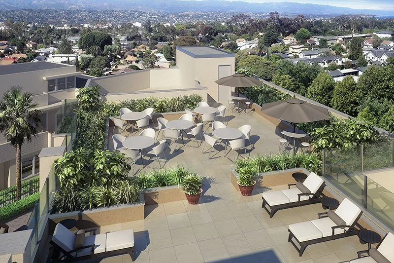 Sustainable features added to the new development include drought-resistant plants, St. Augustine grass (also pet-friendly), LED lighting outside, energy efficient indoor lighting, and the preservation of gravel-lined roofs. The complex will also offer an impressive 61 electric vehicle-charging stations upon completion of the propertyβs renovation.