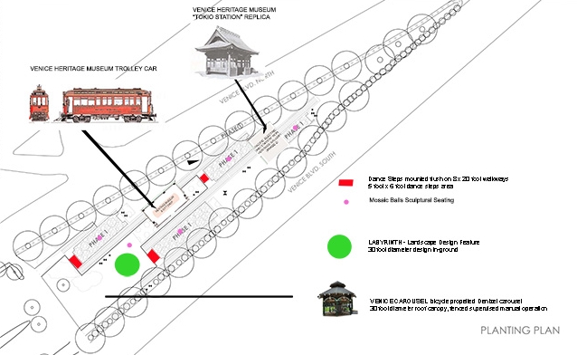 Also in the master plan for the park is the establishment of a Venice Heritage Museum, which would include the placement of a Pacific Electric Red Trolley Car and a replica of the Tokyo Station, which was once a hub for folks taking the train from downtown LA to Venice until the 1950s when it was razed.