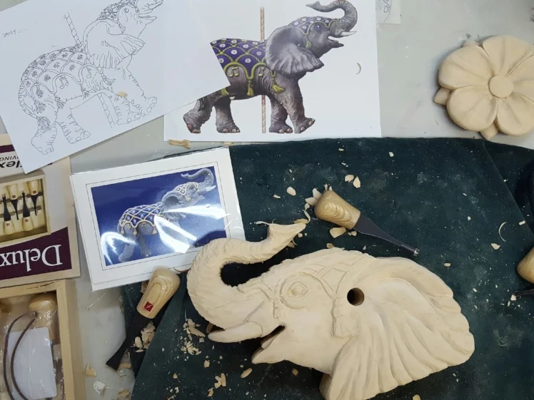 Murez' carving table at the Albany studio where she spent much of last month studying the craft. (Photo by Robin Murez)