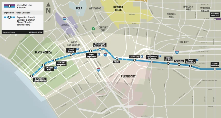 The final extension to the Westside will add seven new stations to the route (see the map above), and a commute between the 7th/Metro Center in DTLA and the Santa Monica Station is expected to take 46 minutes.