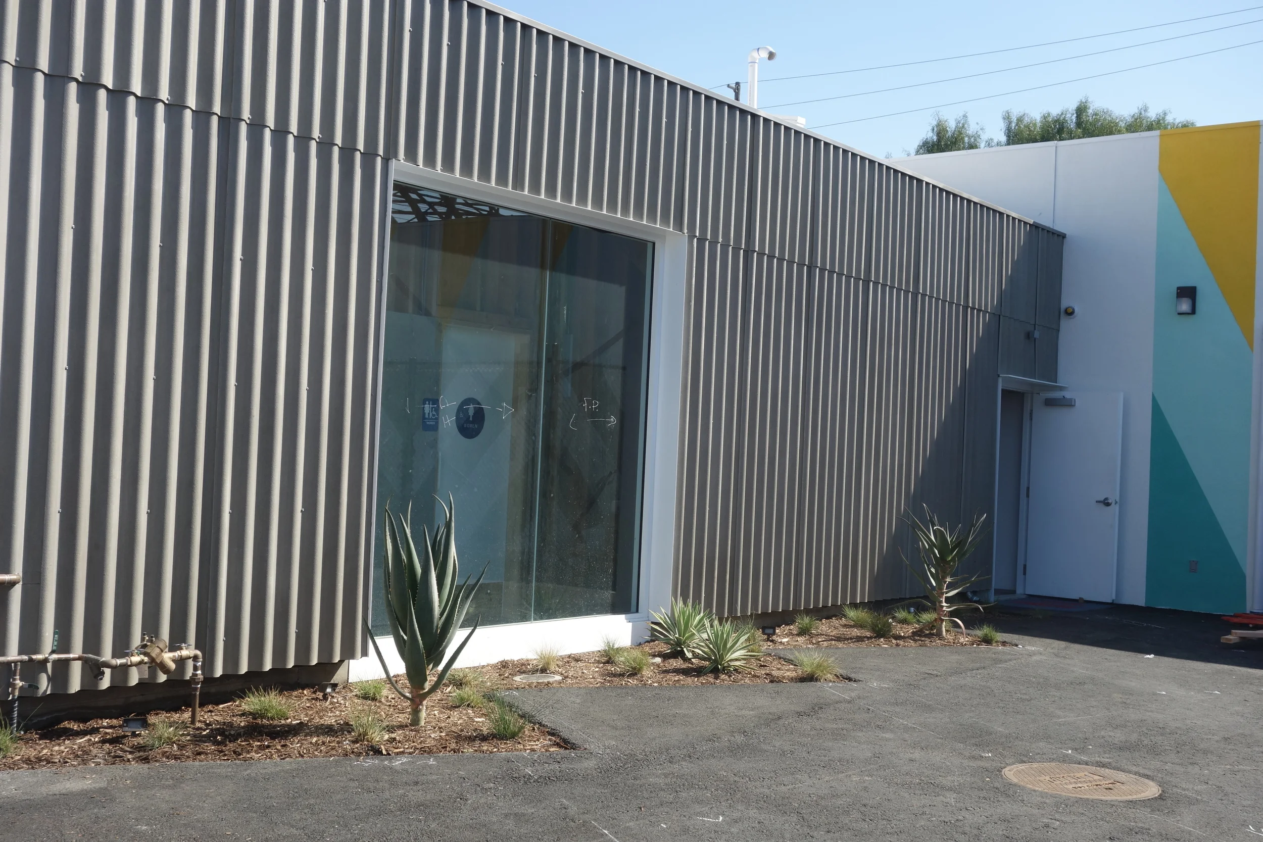 Johnson describes Food + Bread as the hand drawn cousin of Snack Bar. It's more casual and communal with open areas to gather and socialize. The design is minimalist and modern, influenced by two articles Hibler discovered in World of Interiors, one of a 140-year-old Japanese tea factory, and the other, a several-hundred-years-old cabin used to cut and dry tobacco. He loved the wood palette, which is used throughout Food + Bread's interior and patio/ "urban park." And of course, the restaurant pulls in a lot of Venice inspiration as well. In our earlier interview with Johnson and Rudolph, they said they wanted it to retain its roots as a Lincoln Blvd auto shop. The floor-length windows were established from structural openings where the garage doors used to be. And in the front lot, the actual B&S signage was saved and encased in a slick new circular sign post.